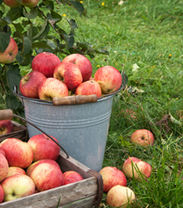 Die Äpfel von unseren Streuobstwiesen lassen wir zu Apfelsaft pressen. Probieren Sie auch unseren naturtrüben Apfelsaft.